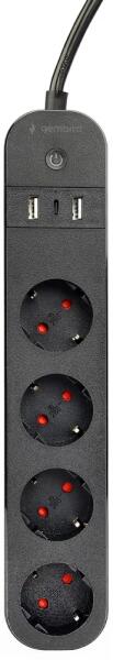 GEMBIRD Smart power strip with USB charger 4 sockets Black (TSL-PS-S4U-01)