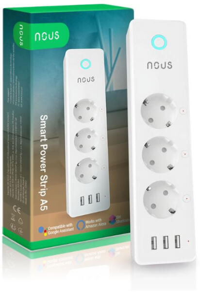 A Nous A5 okos Wi-Fi-s konnektor elosztó a népszerű Tuya okosotthon platformot használja távoli vezérlésre és automatizációkhoz. 16A-es, fogyasztásmérővel felszerelt elosztó típus, így nem csak vezérelhetjük vele elektromos eszközeinket, hanem a fogyasztásukat is mérhetjük.