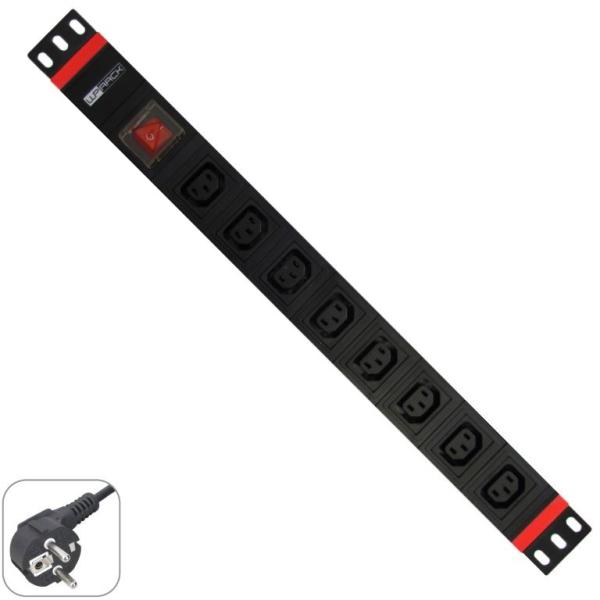 Wp Multiple Socket for rack 19", 8*IEC C13 sockets with switch, Schuko Plug 16A, 1U (WPN-PDU-G05-08)